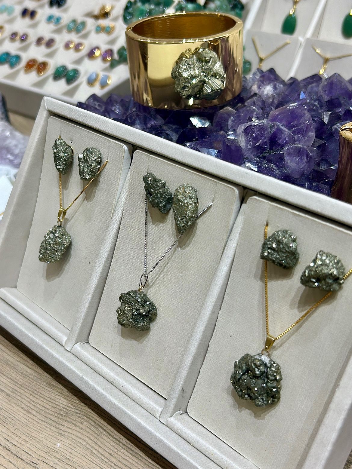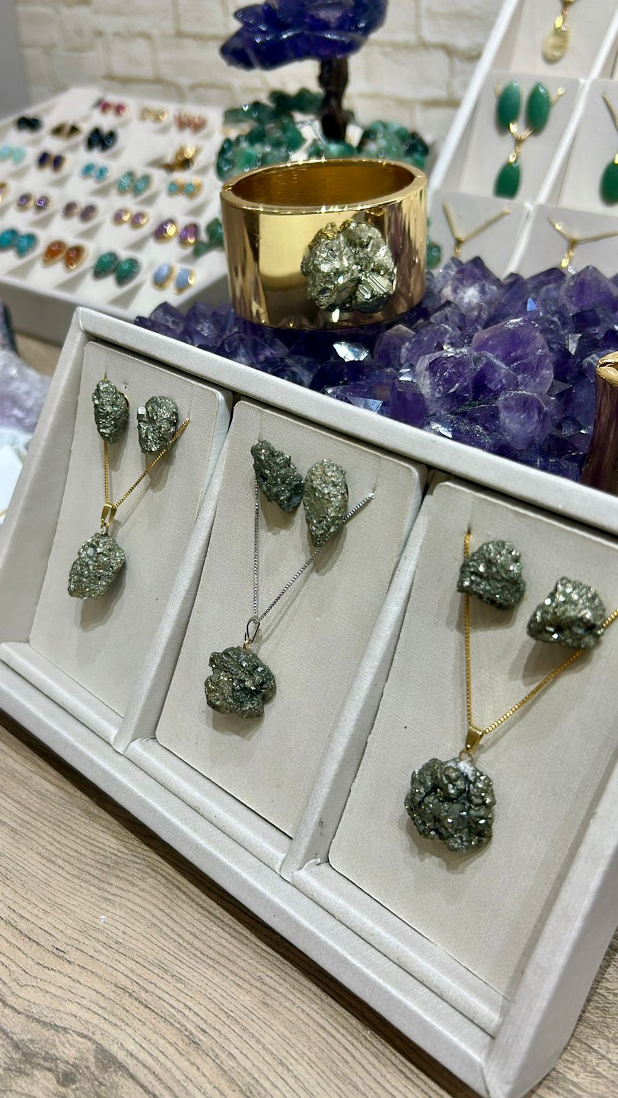 Brinco e colar de pirita